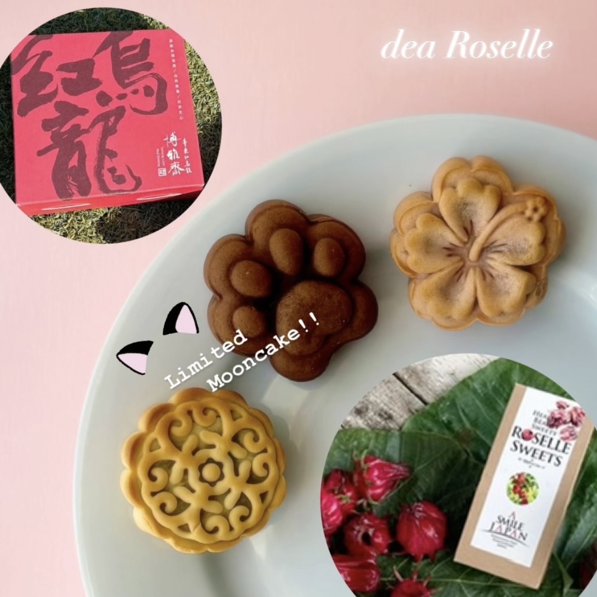特製月餅は黒猫チョコ他3種。洛神酥、ローゼルティーや紅烏龍も