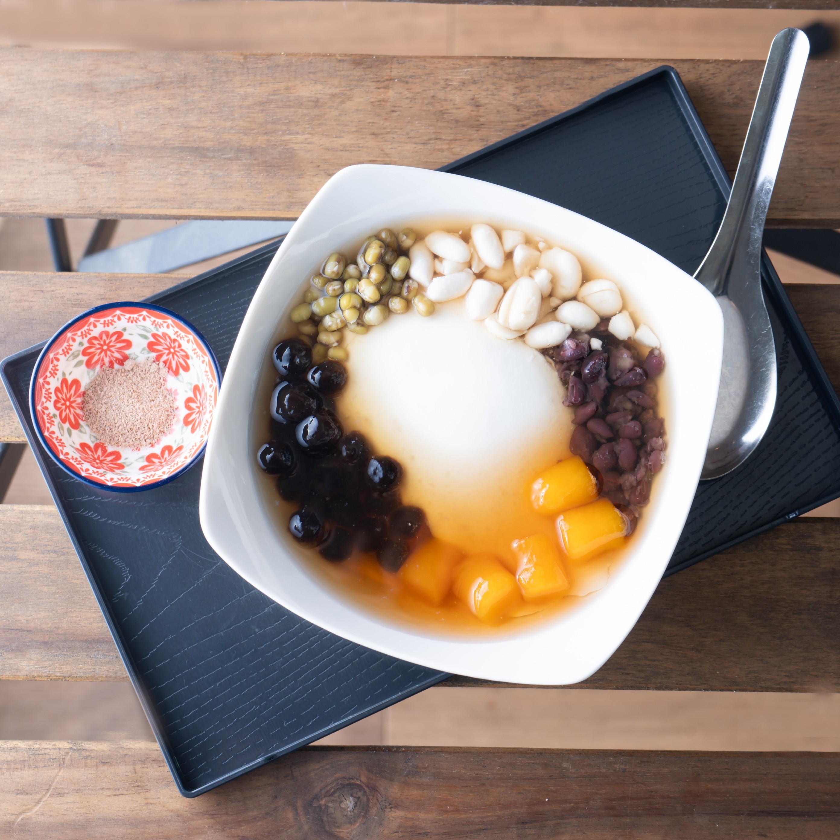 台湾かき氷を準備しています。マンゴー味、いちご味、etc