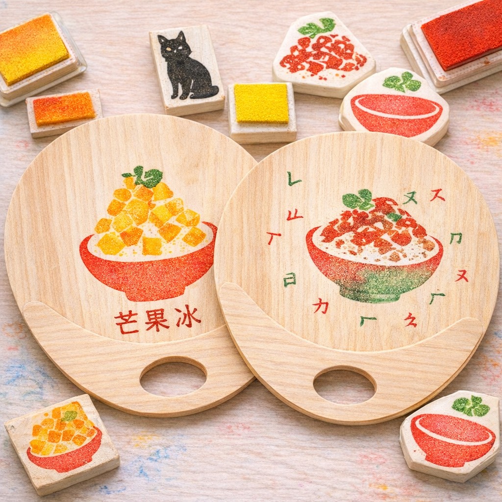 台湾や黒猫にまつわるハンコでオリジナルの木のうちわを作ろう!