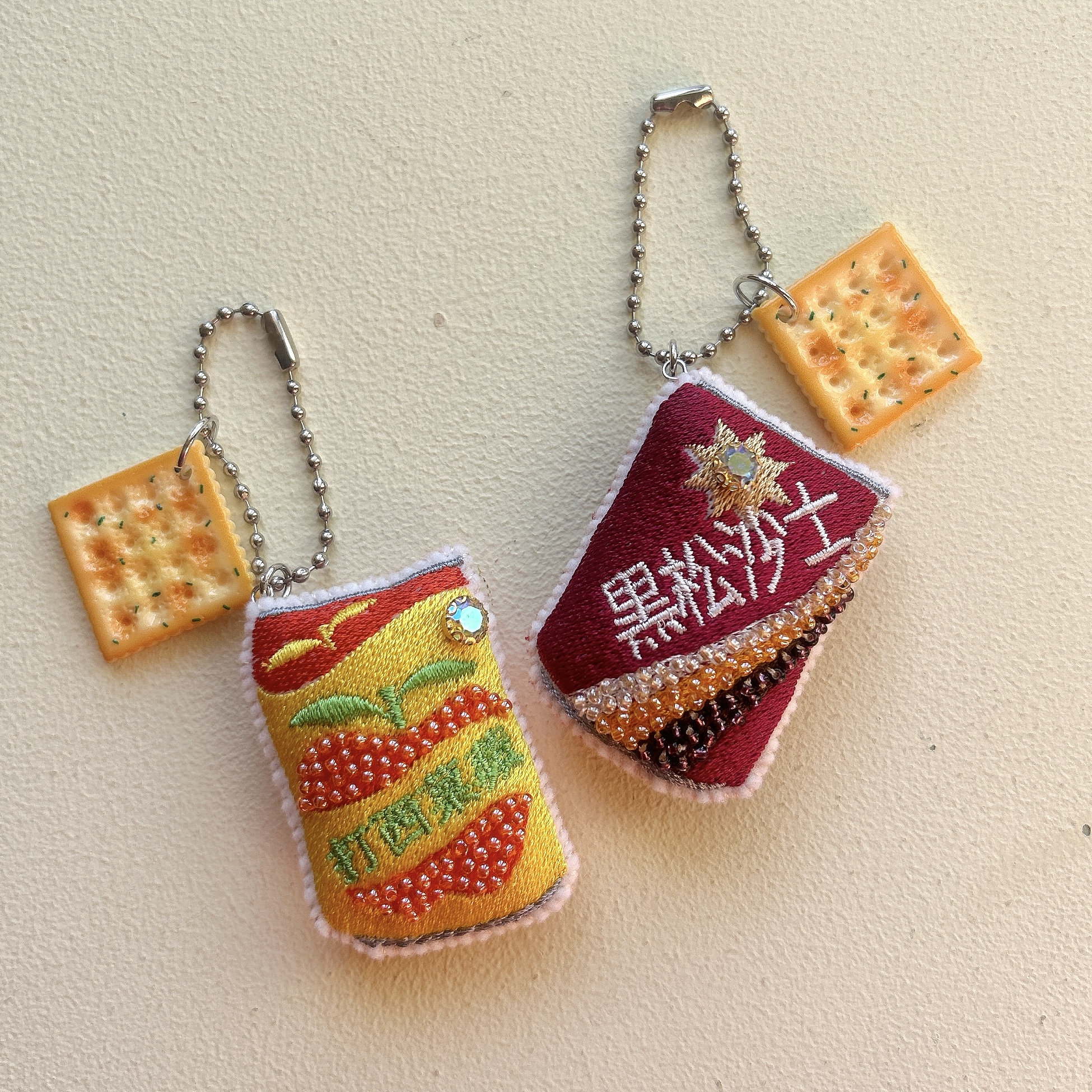 台湾の「蘋果西打」と「黒松沙士」の刺繍チャームを作ります。